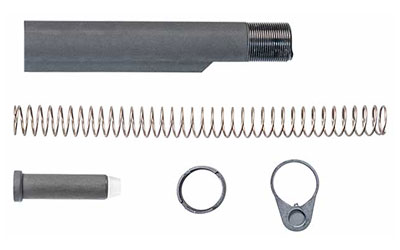 Luth-AR’s 9mm Mil-Spec Carbine Buffer Tube Complete Assembly Kit for AR-15 rifles includes a Mil-Spec diameter carbine buffer tube, 9mm carbine recoil buffer, carbine recoil spring, receiver end plate and castle nut.