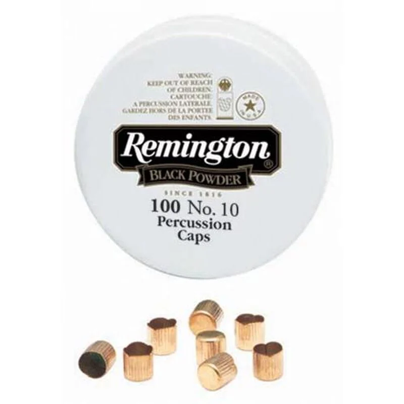 Remington’s No. 10 Perucssion Cap is ideal for black powder enthusiasts who demand positive ignition. It comes with 100 caps per tin.